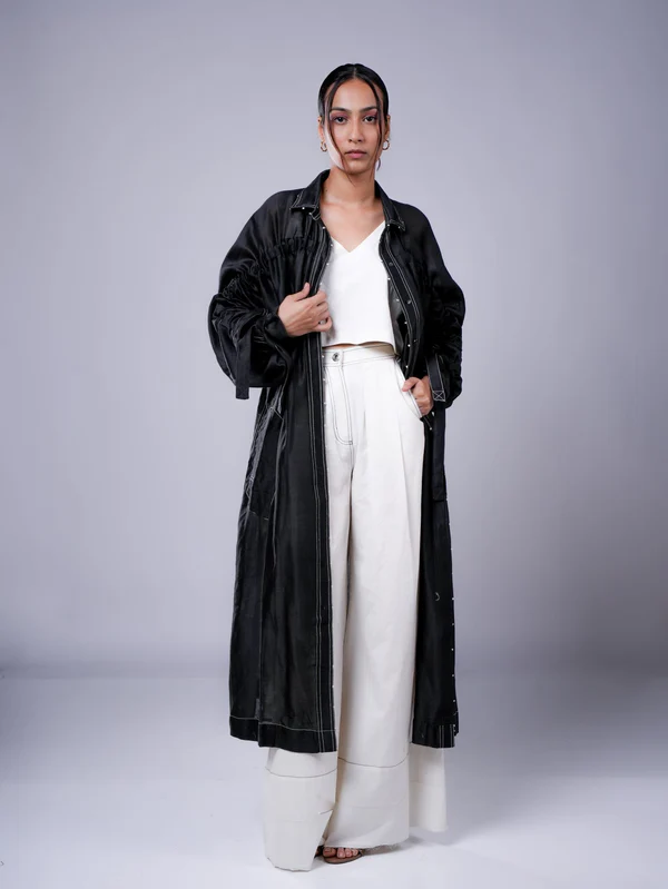 grey trench look