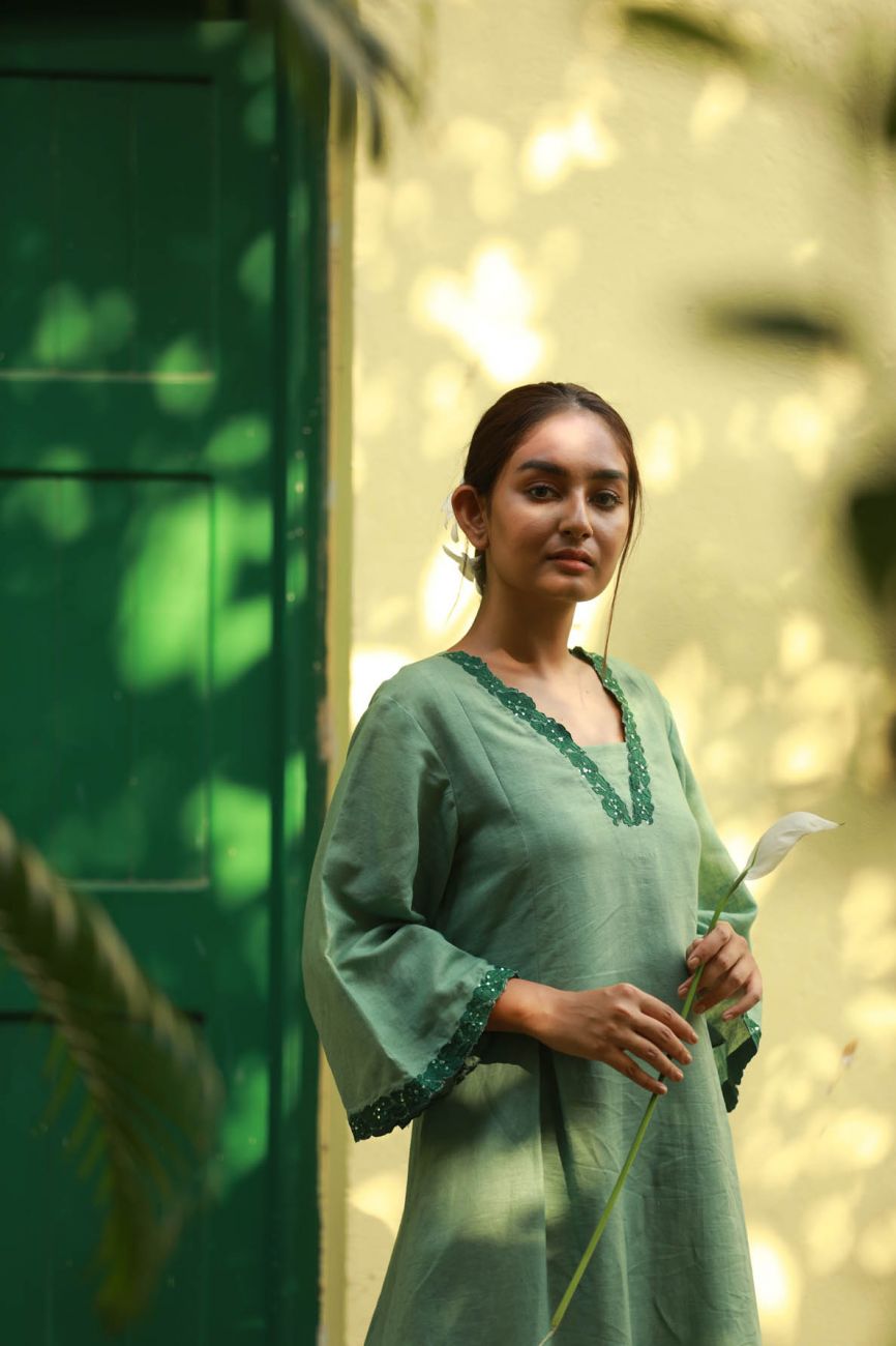 green side pleated dress