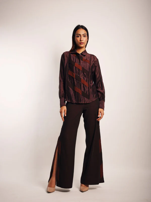 brown crop saree shirt pants set